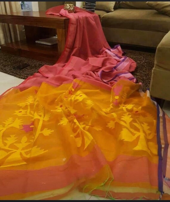 Matka Silk Saree With Jamdani Pallu / Handwoven matka wth muslin pallu saree which is intricately made by weavers in fulia. Matka Silk Saree With Jamdani Pallu / Silk cotton sarees silk organza jamdani saree saris saree wedding indian sarees hand weaving paisley delicate.