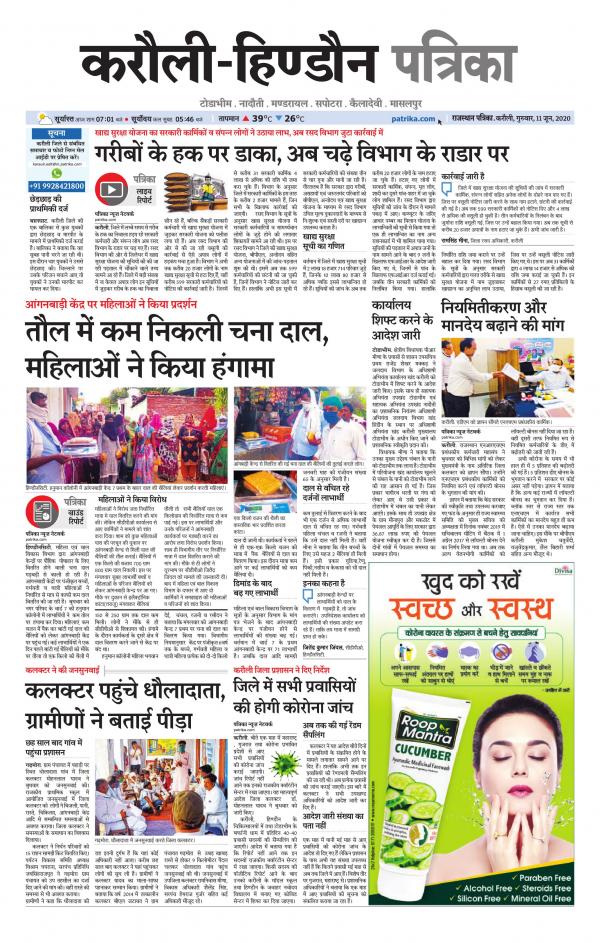 Newspaper Aaj Ka Akhbar Rajasthan Patrika / आज तक पर पढ़ें ताजा समाचार देश और दुनिया से, जाने व्यापार, बॉलीवुड, खेल और राजनीति के ख़बरें. Newspaper Aaj Ka Akhbar Rajasthan Patrika / Rajasthan patrika one of the most populer online hindi newspaper.